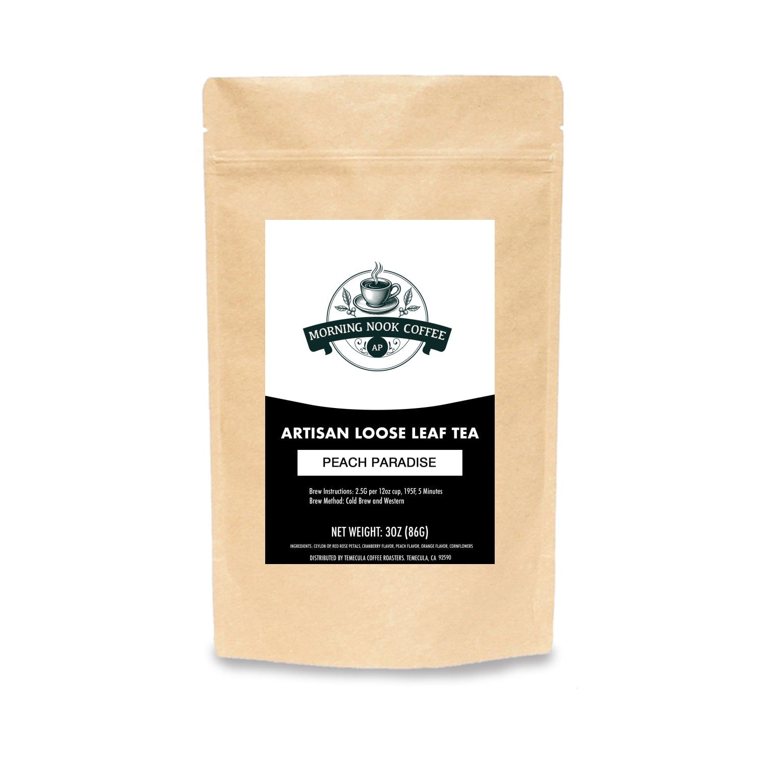 This herbal blend is fruity, smooth, aromatic, and sweet. Fruity peach, sour cranberry and smooth notes of rose, creates paradise in a cup. A fantastic and refreshing cup both hot and cold.